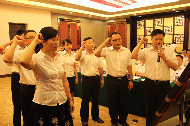 会议首先举行了庄严的新党员入党宣誓仪式,7名新党员在苏千里同志的领誓下,面对鲜红的党旗立下了要为共产主义事业奋斗终身的誓言。铮铮誓词,激起了与会全体党员爱党、爱国的无限热诚。