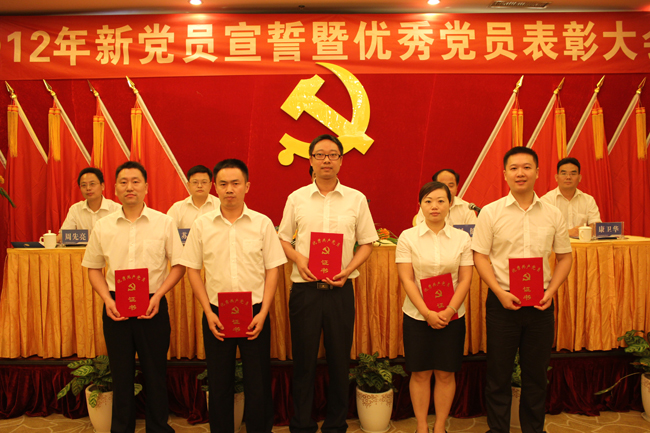 6月29日上午,中共MILAN米兰体育·(中国)官方网站委员会2012年新党员宣誓暨优秀党员表彰大会在长沙隆重举行。大会在庄严的《国歌》声中开幕。党委全体成员、MILAN米兰体育·(中国)官方网站全体党员、入党积极分子参加了会议。会议由刘健同志主持。