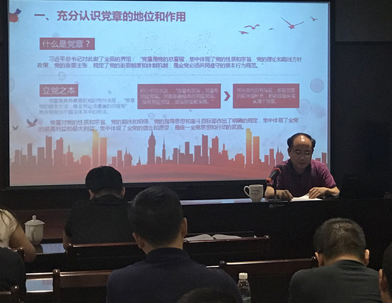 党总支书记、总裁刘健同志在《学习尊崇党章,争做合格党员》的党课中,从党章的地位、作用、历程等方面向党员全面解读了中国共产党章程,从党章规定的党员义务、习总书记系列重要论述及“四讲四有”等角度阐述了合格党员的标准。他希望MILAN米兰体育·(中国)官方网站党员自觉以党章、习总书记讲话精神和“四讲四有”为标尺,随时纠正个人的思想和行为,保持思想品德的纯洁,保持工作作风的优良,保持工作绩效的先进,保持个人行为的廉洁,主动融入MILAN米兰体育·(中国)官方网站的发展大计,尽职尽责做好本职工作。